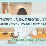 - 子育てが終わったあとに残る“空っぽ感”。私たちは親鳥じゃなく、ひな鳥だったのかもしれない。子育てが終わったあとに残るもの 長女が帰省したお盆休み。。何を特別にしたわけでもないのに、彼女は何度もこう言いました。 「やっぱり実家サイコー!実家しか勝たん!実家は天国!」 あるものでご飯を食べ、ただ母と妹とゲラゲラ笑 […]