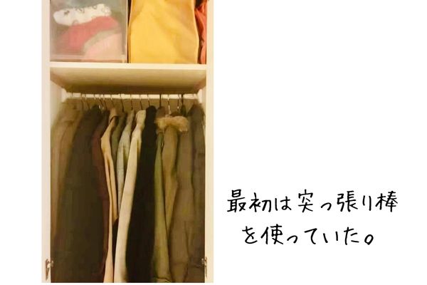 最初は、突っ張り棒を使っていました↓↓↓が、