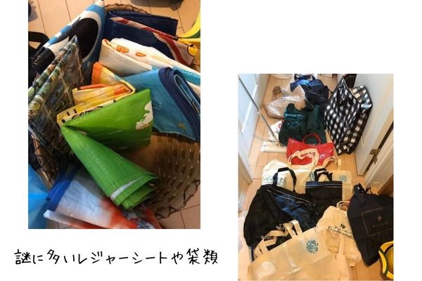 山ほどのレジャーシートと、山ほどの保冷バッグやもらった袋とか、謎のコード類とかとか・・・(笑)