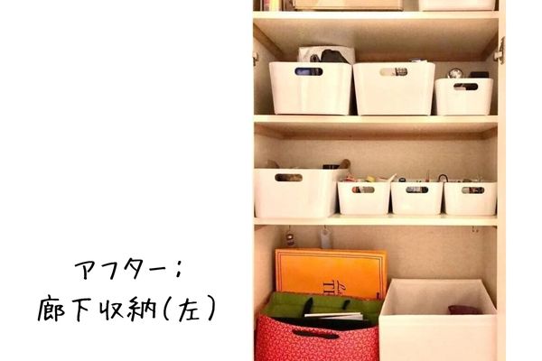 我が家はマンションで、廊下に向い合せで二つの収納があります。